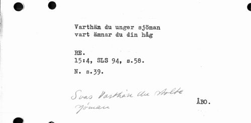 //// W v 1 //// Varthän du unger sjöman vart ämnar du din håg //// RE • //// 15:4» SLS 94» b.58. //// H. s.39. //// ÅBO. ////