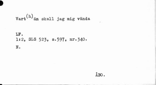 //// r //// (h) //// Vartv 'än skall jag mig vända //// s //// LF. //// 1:2, SLS 523, s.597» nr.340. //// N. //// j //// ÅBO- ////