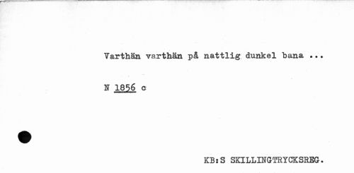 //// Yarthän varthän på nattlig dunkel bana . •• //// —- //// / \ //// U 1856 o //// KB:S SKILLINGTRYCKSREG. ////