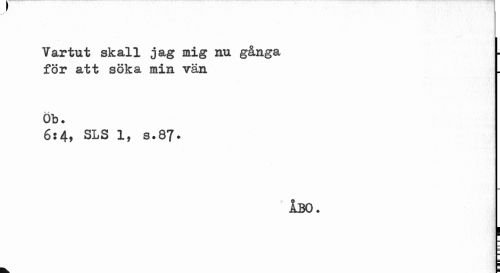 //// V ar tu t skall jag mig nu gångs, för att söka min vän //// Ob. //// 6:4, SLS 1, s.87. //// ÅBO. //// 1 //// ¦ //// m ////