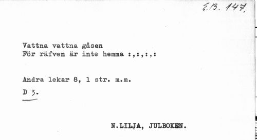 //// . fr/ //// Vattna vattna gåsen //// För räfven är inte hemma :, s,:,: //// Andra lekar 8, 1 str» m»m. //// D 3- //// L i //// N.LILJA, JULBOKEN. I //// > ////