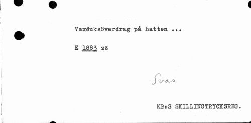 //// ^^ Vaxduk sö ver drag på hatten ? //// E 1885 zz //// J //// KB t S SKILLINGTRYCKSREG. ////