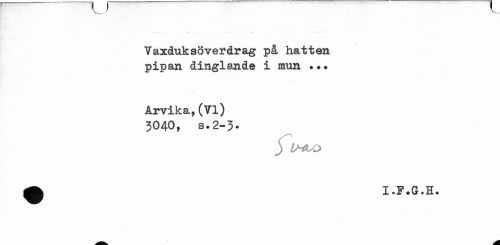 //// v V //// Vaxduksöverdrag på hatten pipan dinglande i mun •?• //// Arvika,(Vi) //// 3040, s.2-3* //// 3 //// ^^ I .F«G *H. ////