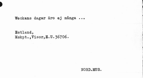 //// ' i //// j //// i //// Weekans dagar äro ej många ... //// i //// Estland, //// Mskpt*,Yisor,E.U.36706. //// 1 //// i //// HORD.MUS. //// f //// ( ////