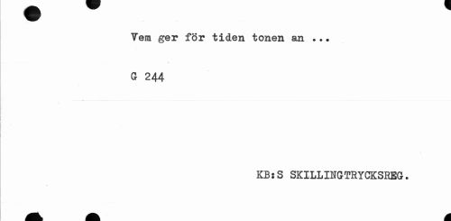 //// Vem ger för tiden tonen an ... //// G 244 //// KB:S SKILLIIIGTRYCKSREG. ////