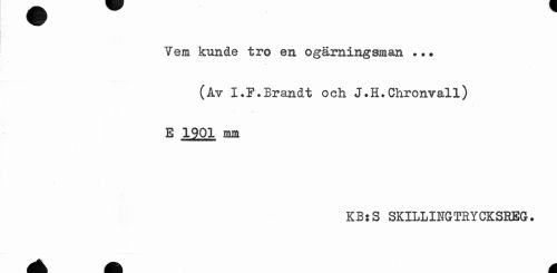 //// Vem kunde tro en ogärningsman . *» //// (Av I.F.Brandt och J.H.Chronvall) E 1901 mm //// KB:S SKILLIHGTRYCKSHEG• //// A m M ////