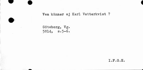 //// Vem känner ej Karl Vetterkvist ? //// I % ... //// i1 //// / ... //// Göteborg, Vg. //// 5814* s.5-6. //// I.F.G.H. //// - ^ ////