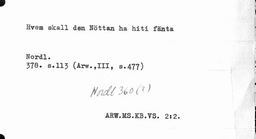 //// Evem skall den Höttan ha hiti fänta Nordl. //// 378. s.113 (Arw.,III, s.477) S //// ? " ' ' • i' ' vi^l //// ) 4 //// WtndO<o°t2) ¦ //// • ' \1 //// ¦ //// ARW.MS.KB.?S. 2i2. //// i...- //// k ' f ////