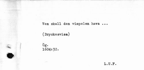 //// Vem skall den vimpelen hava ... (Dryckesvisa) //// i ög-* 1604:32. //// L • U • ]? • ////
