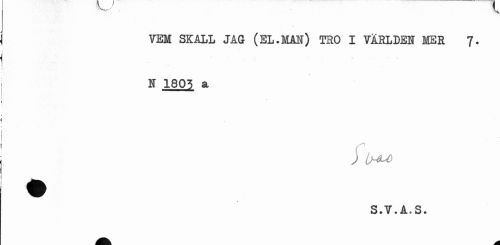 //// VEM SKALL JAG (EL.MAIT) TRO I VÄRLDEN MER 7. //// N 1805 a //// j ihåuC //// S.V.A.S. ////