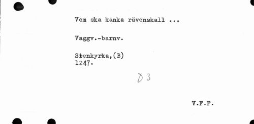 //// Vera ska kanka rävenskall ... //// Vaggv.-bamv. Stenkyrka,(b) //// 1247- //// V.F.F. ////