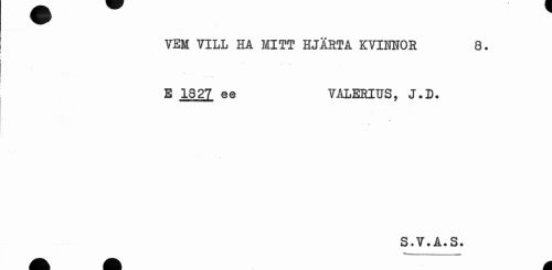 //// VEM VILL HA MITT HJÄRTA KVIMOR 8. //// .m —.. . v //// E 1827 ee VALERIUS, J.D. //// S.V.A.S. //// A A M ////