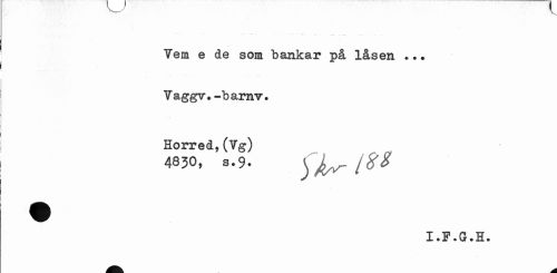 //// Vem e de som bankar på låsen •. • Vaggv, -bamv. //// Horred,(Vg) //// 48J0, s.9. //// X ? F * G • H* ////