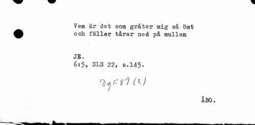 //// Vem är det som gråter mig så ömt //// ^^ ooh fäller tårar ned på mullen //// * //// JE. //// 6:5, SLS 22, s.145* //// I BO. //// i MQE ¦. -- ariHfltou_ i n^iaÉ tu» - -¦ -¦ k.* --- - - ¦ —— .i . __- — — m--- hmi ---—___—___¦¦¦¦ ___-___. . ^ - - . - — __— -_^ ////