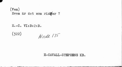 //// (Vem) //// Hvem är det som ridåer ? H.-C. YI:B:2:B. //// i //// J //// (522) fttrvfr //// H-CAVALL-STEPHENS KB. ////