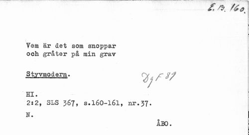 //// I //// Vem är det som snoppar och gråter på min grav //// Styvmodern. cy f g? //// Hl. //// 2:2, SLS 367, s.160-161, nr.37. //// N. i //// ÅBO. //// i ////