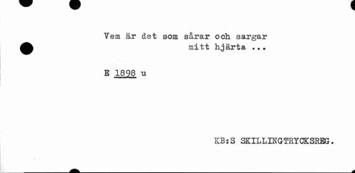 //// Vem är det som sårar och sargar ^^ mitt hjärta ?.? //// E 1898 u //// KB:S SKILLINGTRYCKSRBG • ////