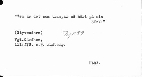 //// I //// "Vem är det som trampar så hårt på min //// grav?" //// i //// i //// ' • i //// (Styvmodern) ^fiaff? i //// TTgl. Gärdhem, 111:478, s.9. Hudberg. //// ULMA. ////