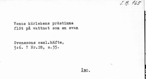 //// tf. v- //// Venus kärlekens prästinna flöt på vattnet som en svan //// Svenssons saml.häfte, //// 5:6. ? Nr.28, s.35- //// v. //// ÅBO. j ////