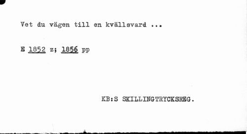 //// Tet du vägen till en kvällsvärd //// v //// E 1852 z; 1856 pp //// KB:S SKILLINGTRYCKSHEG. ////