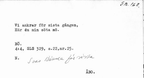 //// S/S. /£<? //// 0 //// i //// Vi ankrar för sista gången, Här dm min söta mö. //// BÖ. //// 4:4, SLS 529, s.22,nr.25. //// Åbo. j ////