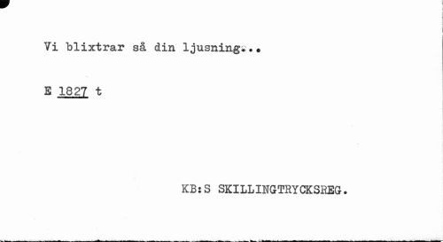 //// Vi blixtrar så din ljusning*.. //// E 1827 t //// KBjS SKILLINGTRYCKSEEG. ////