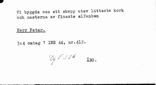 //// Vi byggde oss ett skepp utav lättaste kork och masterna av finaste elfenben //// Herr Peter. //// 3:4 omtag ? INE 44, nr.412. //// ^^^ Åbo. //// \ ////