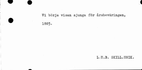 //// Vi börja visan sjunga för årsbeväringen, //// ^ 1885. //// L.U.B. SKILL.UNIK. //// — A ////