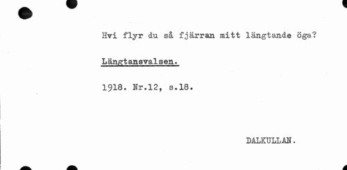 //// Hvi flyr du så fjärran mitt längtande öga? //// Längtansvalsen» //// 1918. Nr.12, s.18. //// / //// MLKULLM. //// a. A. A ////