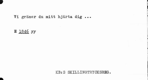 //// I //// i //// 7i grämer du mitt hjärta dig E 1846 yy //// I //// r //// I //// KB:S SKILLINGTRYCK3REG. //// k ////