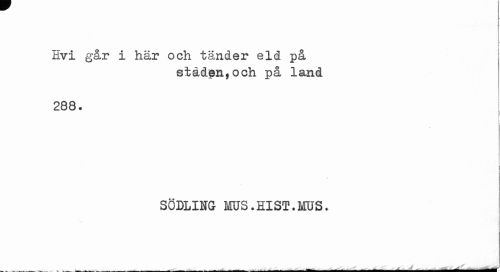 //// Hvi går i här och tänder eld på //// staden,och på land //// 288. //// ¦ //// i i //// SÖDLINGr MUS.HIST.MUS. //// . _ . . _ , ___„ ___ __f - —- ^ ¦ --- ////