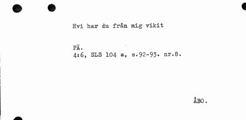 //// Hvi har du från mig vikit PÄ. //// 4:6, SLS 104 a, s.92-93* nr.8. //// ÅBO. ////