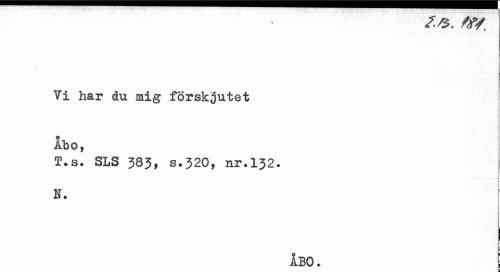 //// ¦ //// i //// \ //// Vi har du mig förskjutet //// I //// Åbo, //// f.s. SLS 383, s.320, nr.132. //// 1 //// J //// K. //// | //// ÅBO. ////