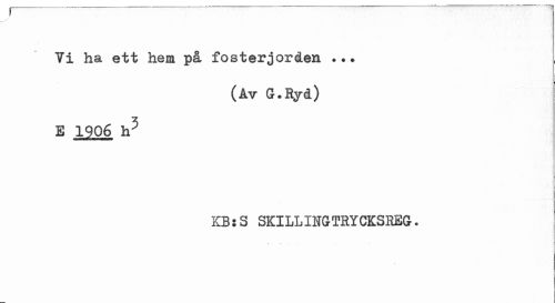 //// 1 //// Yi ha ett hem på fosterjorden ... //// (Av G.Ryd) //// E 1906 h5 //// KB:3 SKILLINGTRYCKSREG. ////