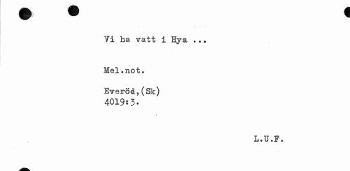 //// 1 v //// Vi ha vatt i Hya ... //// Mel.not. Everöd,(Sk) //// 4019:3. //// L.U.P. ////