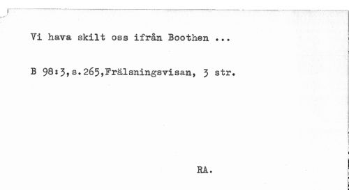 //// / //// .K' //// Yi hava skilt oss ifrån Boothen ... B 98:3,s.265,Frälsningsvisan, J str. //// i t //// RA. | ////