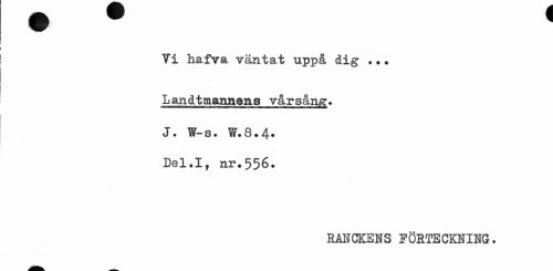 //// Ti hafva väntat uppå dig .. • Landtmannens vårsång* //// J. W-s. W. 8.4» //// Del*I, nr.556. //// RANCKENS FÖRTECKNING. ////