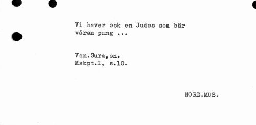 //// Vi haver ock en Judas som här ^^ våran pung .. • //// Vsm.Sura,sn# Mskpt.I, s.10. //// NORD.MUS. ////