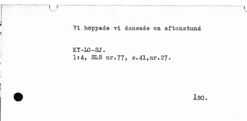//// I ...•---1 //// Yi hoppade vi dansade en aftonstund KY-LQ-SJ. //// 1:4, SLS nr.77, s.41»nr.27. ////