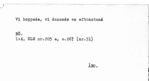 //// J^ " . ¦ \ //// I //// Vi hoppade, vi dansade en aftonstund //// | i //// BÖ. //// It4, SLS nr.205 a, s.267 (nr.5l) //// ÅBO. ^ //// ¦ //// ! ////