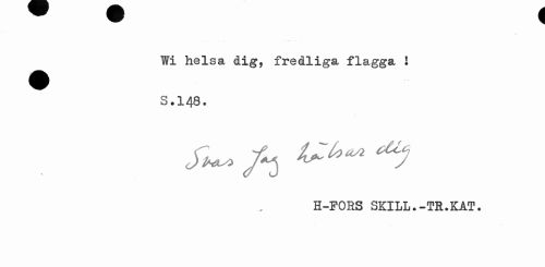 //// Wi helsa dig, fredliga flagga l //// S.148. //// H-FORS SKILL.-TR.KAT. ////