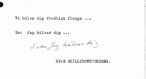 //// p //// Ti hälsa dig fredliga flagga ... Se: Jag hälsar dig . //// KBjS SKILLINGTRYCKSREG. //// t ////