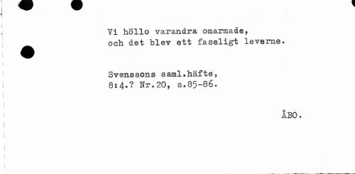 //// i I //// Yi höllo varandra omarmade, i ^^ och det blev ett faseligt leverne. //// i //// Svenssons saml.häfte, J 8:4.? Nr.20, s.85-86. //// 1 ÅBO. //// I //// i //// i ////