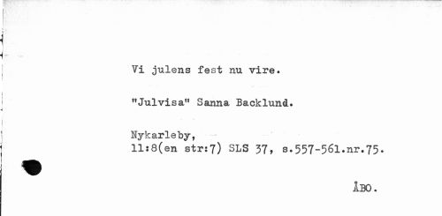 //// Ti julens fest nu vire. "Julvisa" Sanna Backlund. Hykarleby, //// ll:8(en str:?) SLS 37, s.557-561.nr.75. //// ABO. ////