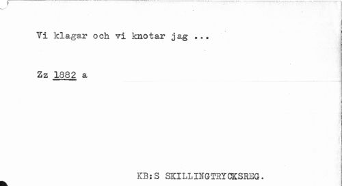 //// Ti klagar och vi knotar jag ... //// / //// Zz 1882 a //// ) //// ¦ '/¦ I //// KB:S SKILLINGTRYCKSREG. ////