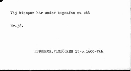 //// Yij kiempar här under begrafne nu stå //// Nr.36. ; //// i //// RUDEBBCK,VISBÖCKER 15-0.I6OO-TAL. //// - ////