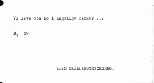 //// ¥ //// Ii leva och bo i ängsliga marker ..« //// \ i //// B1 29 i //// i //// i j //// KB:S SKILLINGTRYCKSREG. ////
