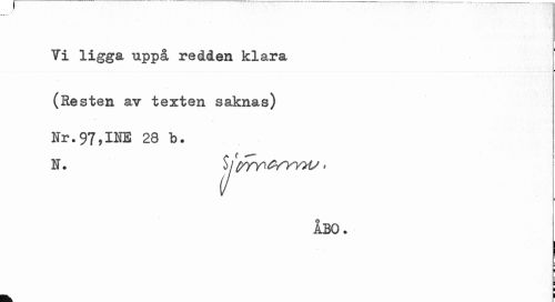 //// Ti ligga mppå redden klara //// (Resten av texten saknas) Nr.97,INE 28 b. //// h. Jjim^t/yrW' //// ÅBO. //// ' Il ////