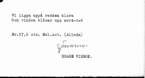 //// Vi ligga uppå redden klara Och vinden blåser upp nord-ost //// Nr.57,6 str. Mel.not. (Allmän) //// v*»*»***» t //// BEAGE VISBOK. //// ...--- " ' ... ... " -- - --- -JL^a.sSS* - ..^L^Jt^,^--- --- ////