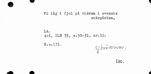 //// Vi låg i fjol på ridden i svenska //// skärgården, //// LA. //// 4:6, SLS 35, s.30-31, nr.10. N.s.131. f - //// ÅBO. ////